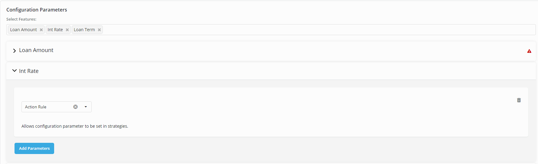 The product parameter will be assigned a value using an Action Rule that is written within the policy * The Action Rule option cannot be combined with any of the other options * If the parameter is not set using the Action Rule as a first option, this does not appear in the dropdown list of the parameter