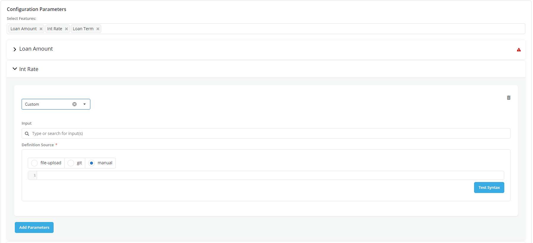 - Manual: Use this option to manually enter the custom logic code
