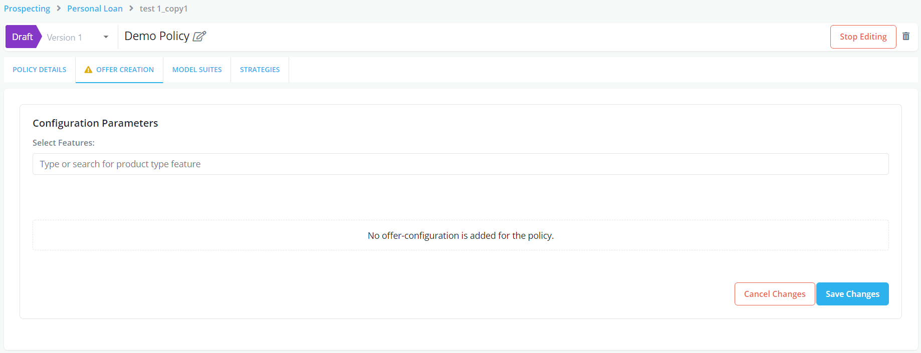 The outcome of most policy decisions are product offers. While registering a policy users are allowed to specify the potential offers that can be generated using the Offer Creation tool.