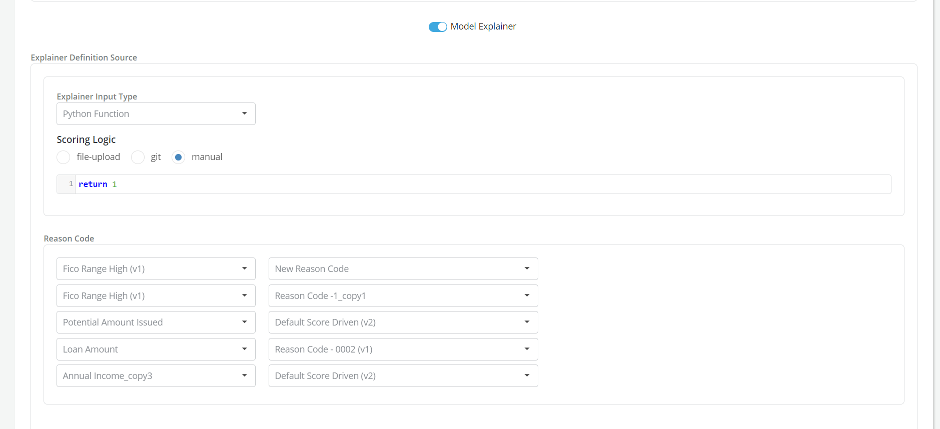 - Additionally, if a model has a registered explainer then the users can also assign reason codes to each of the model's input variables