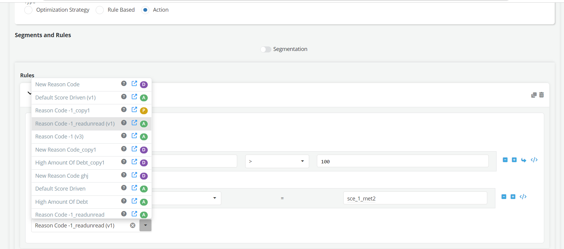 - The platform allows users to create, approve and assign a reason code to each rule in a policy so that it can be used to accomplished the above