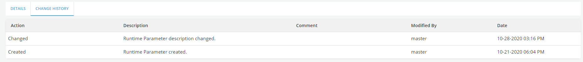 Creation/change history can be seen on Change History tab