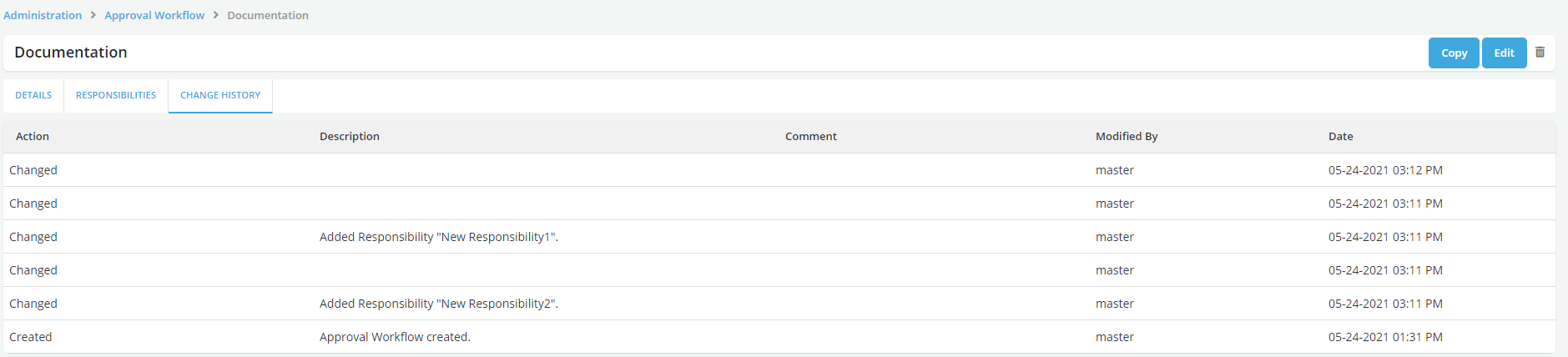 - Go to Responsibilities tab to create and define the responsibilities of the Approval Workflow