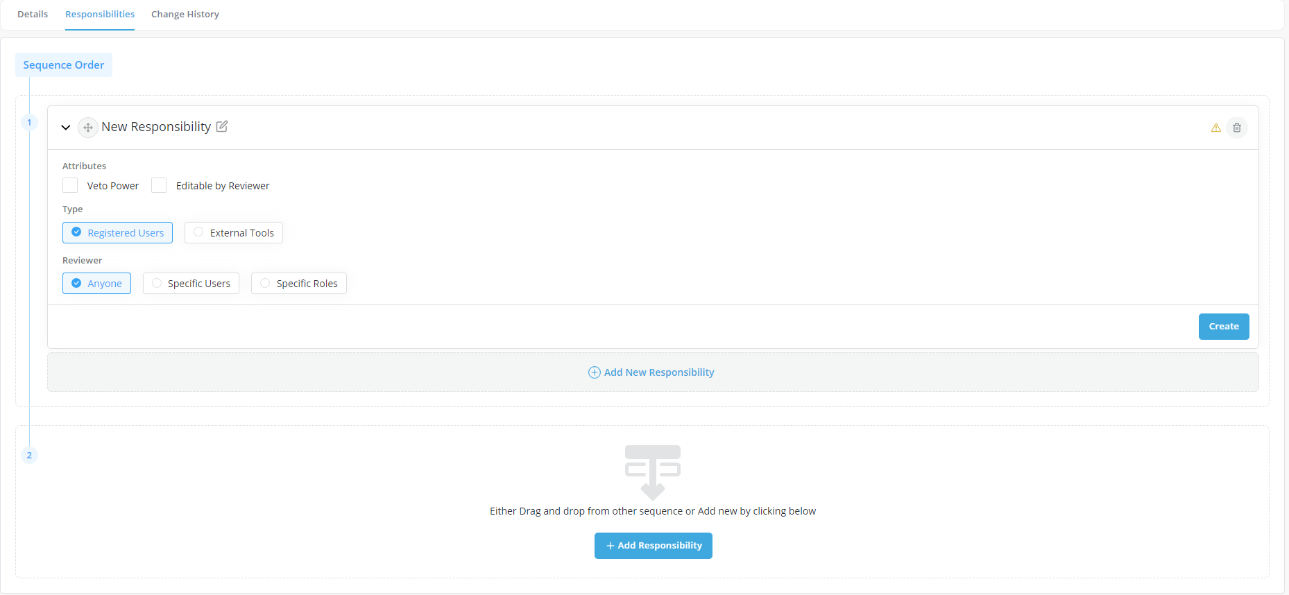 - Check the "Is Sequential" box if you want to enforce a specific sequence in the workflow that would dictate in which order the different responsibilities will perform their reviews