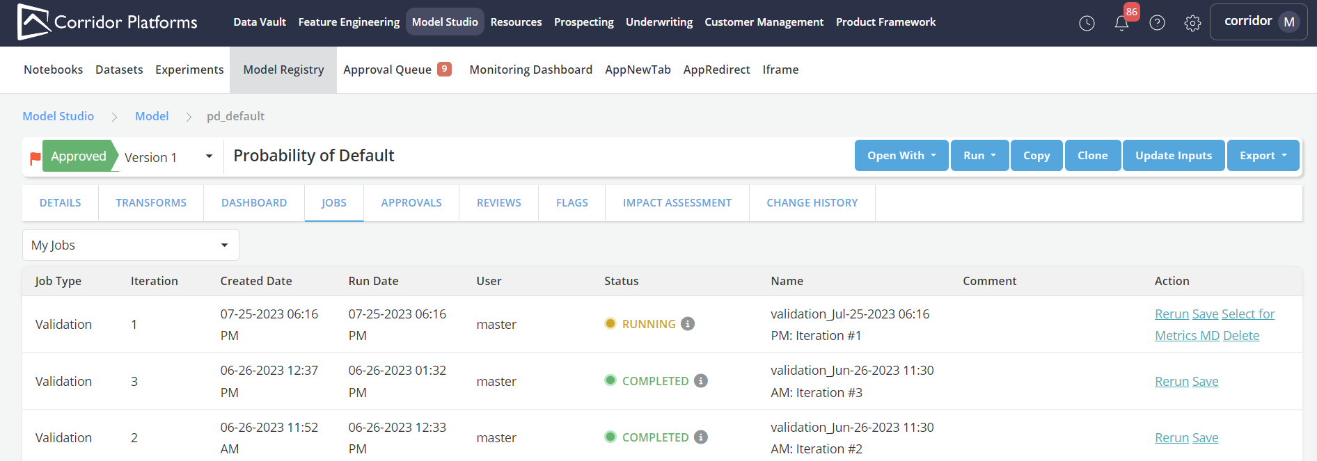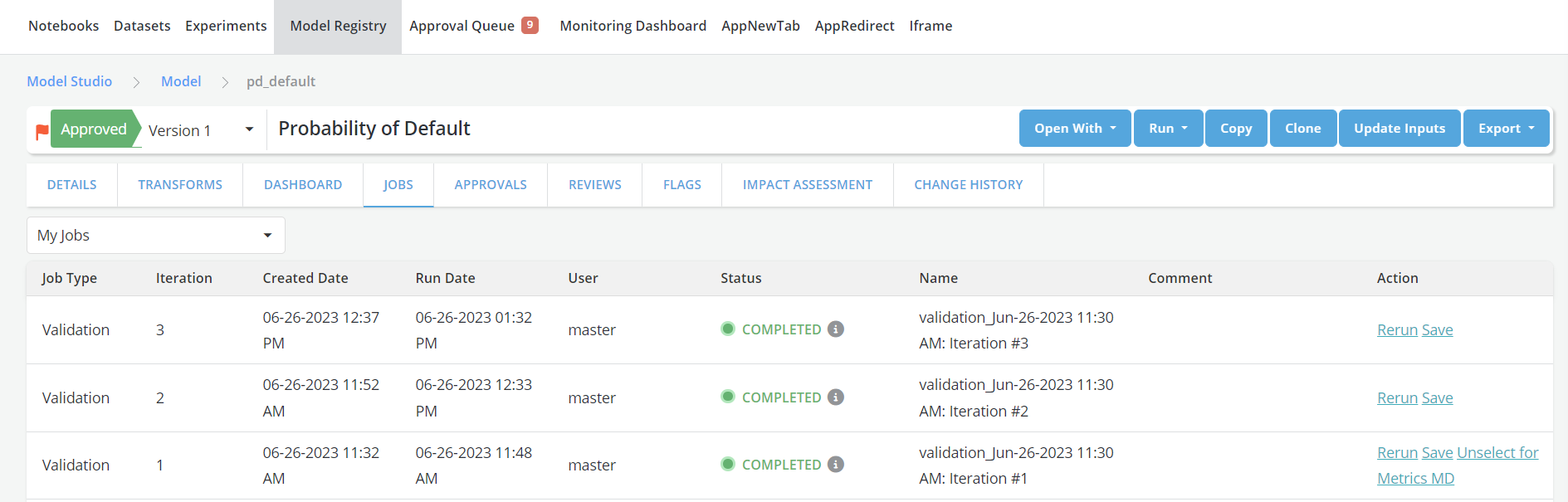 - Go to the approved Object's page and navigate to the Jobs tab.
