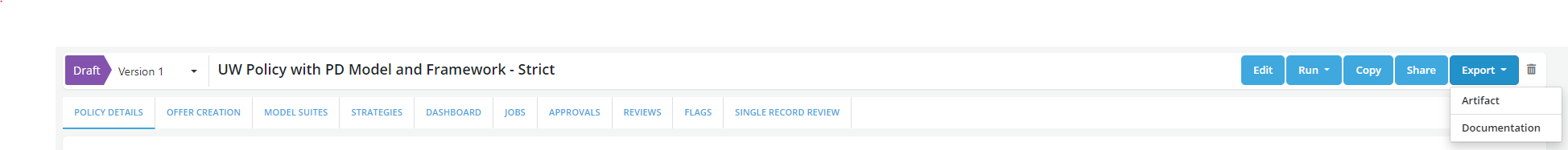 An Artifact is a bundle of documents and executable scripts that gets generated when an object is registered on the Platform. So any item registered in Corridor - be it a Data Element, Feature, Model, or Policy - can be extracted out to be run in a separate environment. The artifact can run independent of Corridor in an isolated runtime environment or production environment. The artifact aims to:
