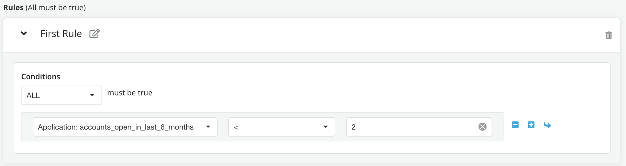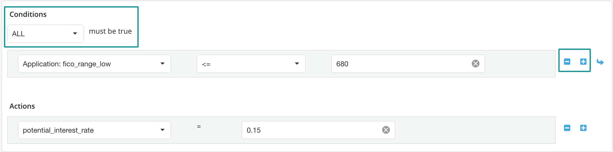 - Use the – button on the right of the screen to delete specific comparisons within a rule