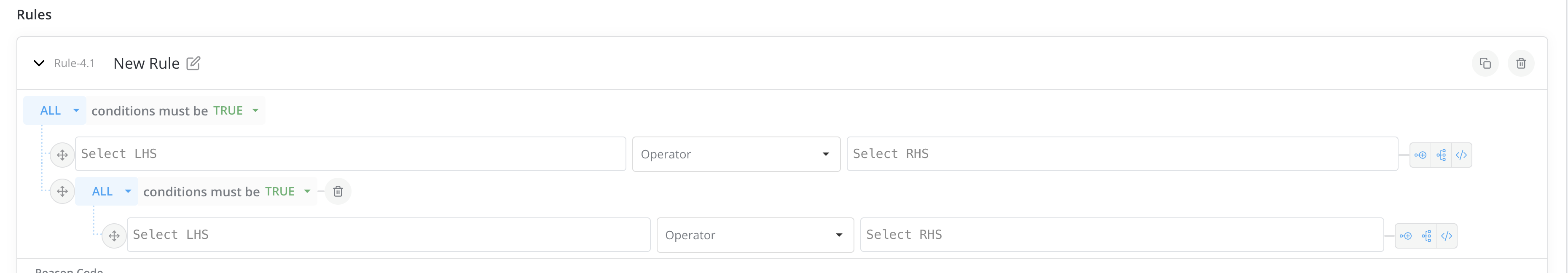 - The way rules nesting logic works is that if group 2 is nested under group 1, then group1 will only consider the combined results from group 2 rather than the outcome of any single rule from that group.