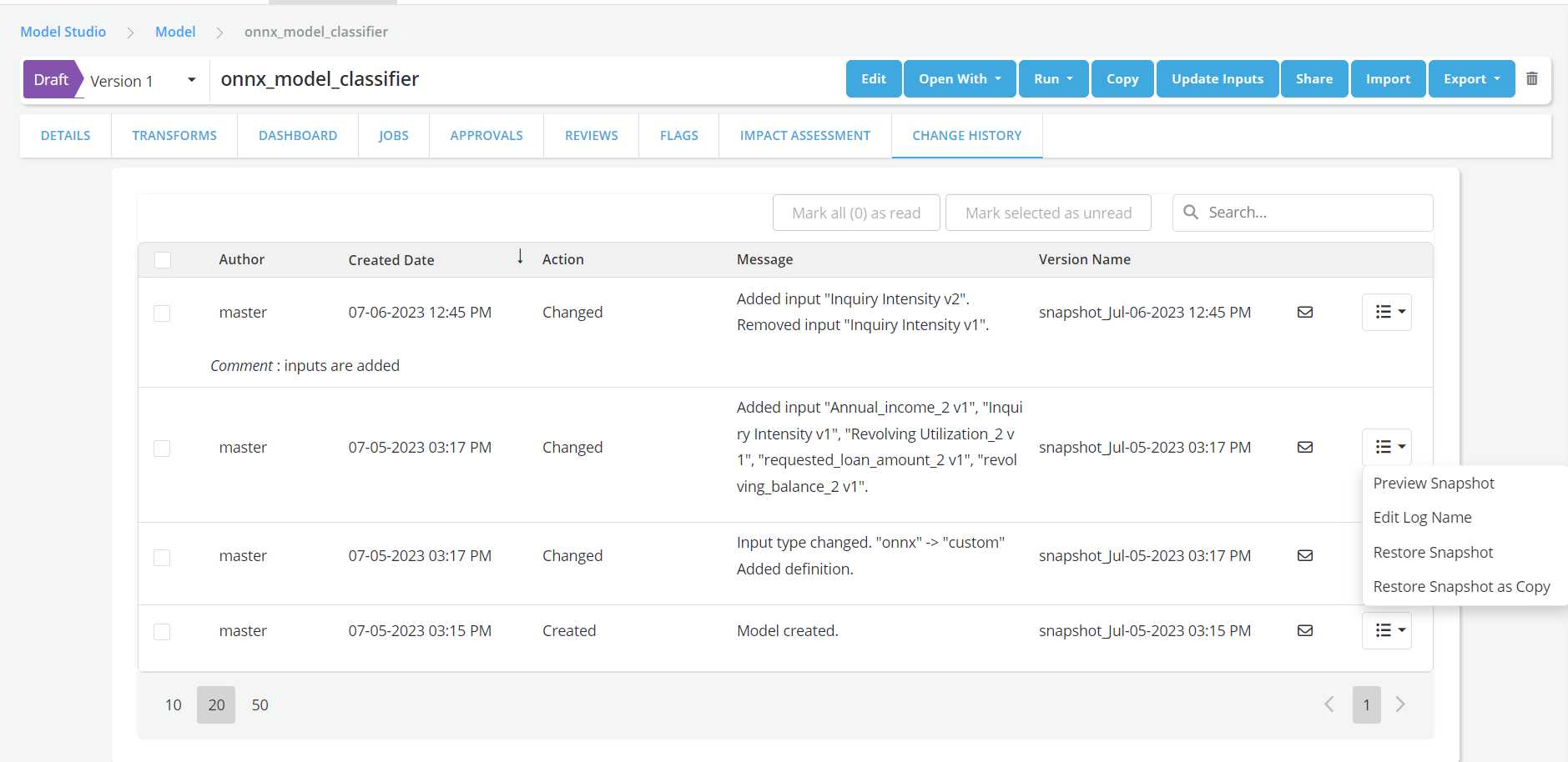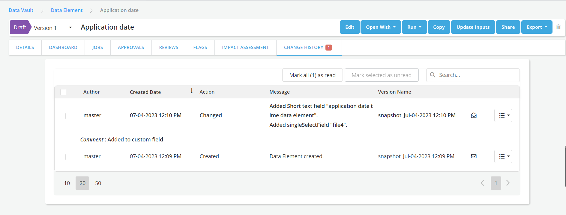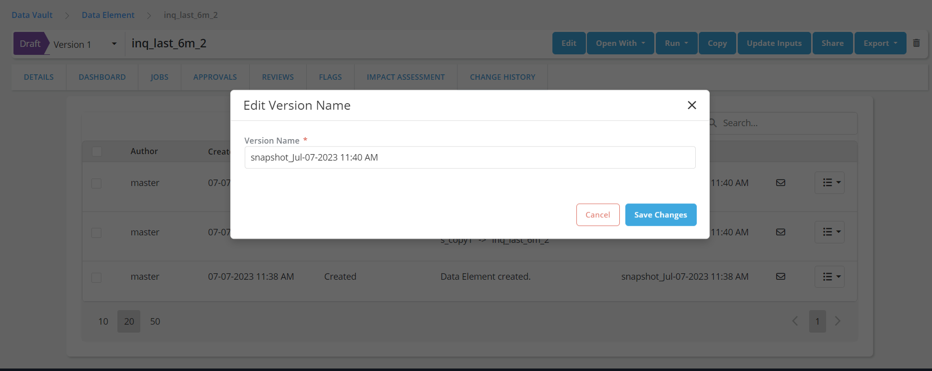 Notes : * Users can revert to an older snapshot of an object if the object has not yet been approved. * Post approval an object cannot be reverted to an older snapshot * Restoring an old snapshot and saving it creates an event in the change log * Objects are editable post restoring