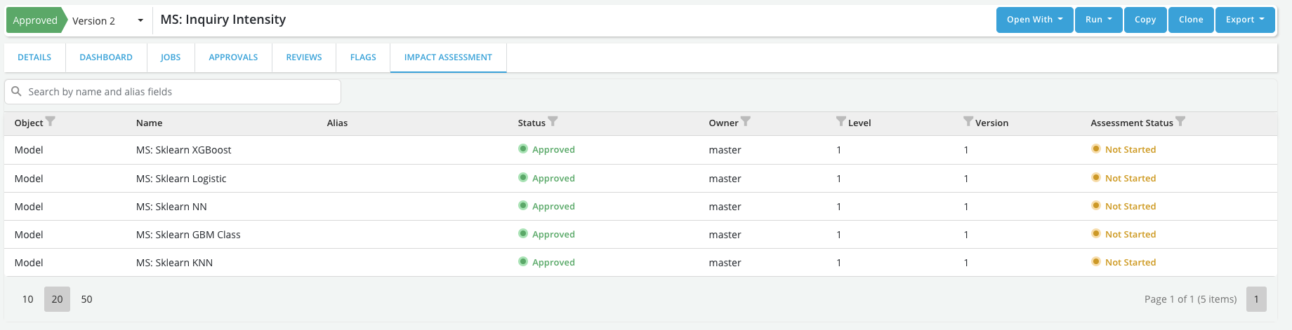 * If an object is in Draft/Pending Approval the Impact assessment page won't be populated until it gets approved