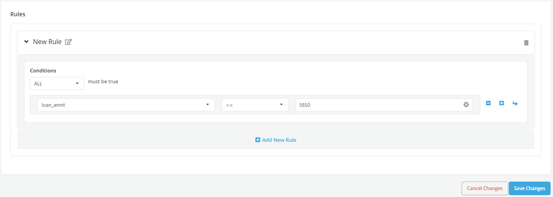 - Users can write as many logical comparisons as they want by clicking on the + Add New Rule link to add a new logical comparison