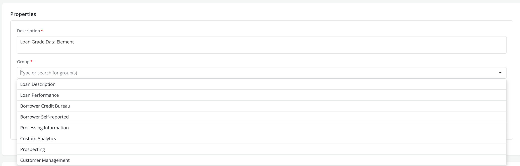 Groups are labels that can be used to group and organize objects into categories, purely for display purposes. This field has no impact on the way the objects are used. Groups are defined using the Settings option and are mainly used to organize information and facilitate search.