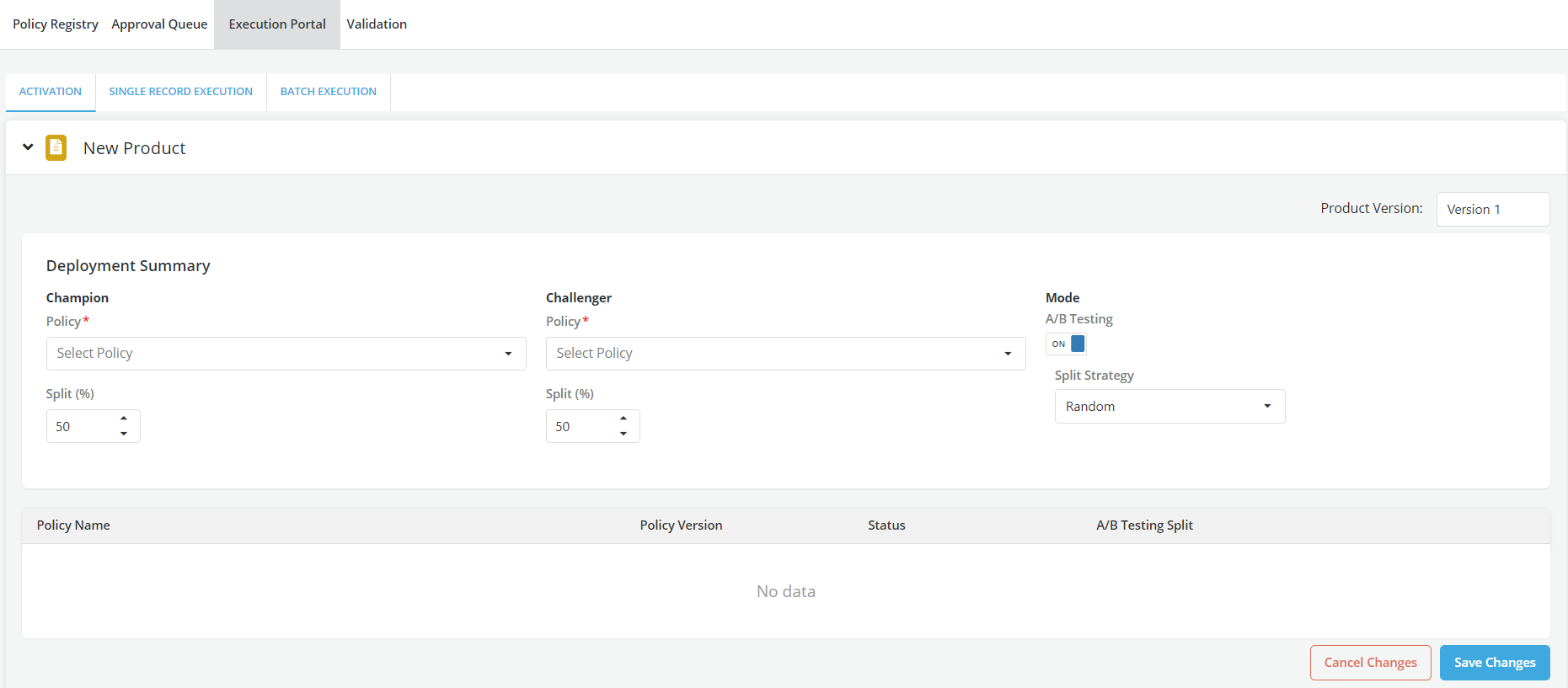 Click on the dropdown under the Challenger option and choose any of the policies provided below. Also, select the split percentage for this policy.