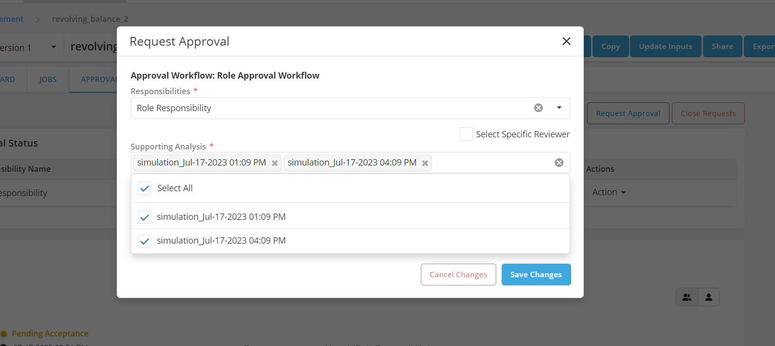 - Select the Job run i.e. simulation, validation or comparison as per the request from the Reviewer and Save Changes