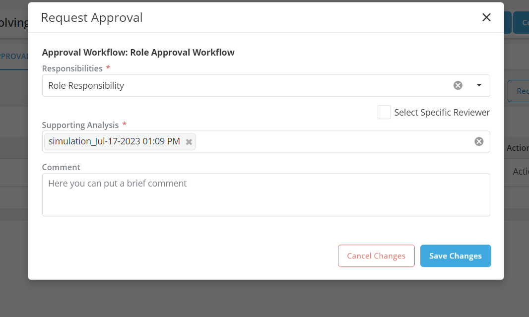 Run a simulation to be attached to the approval request before sending the object for approval