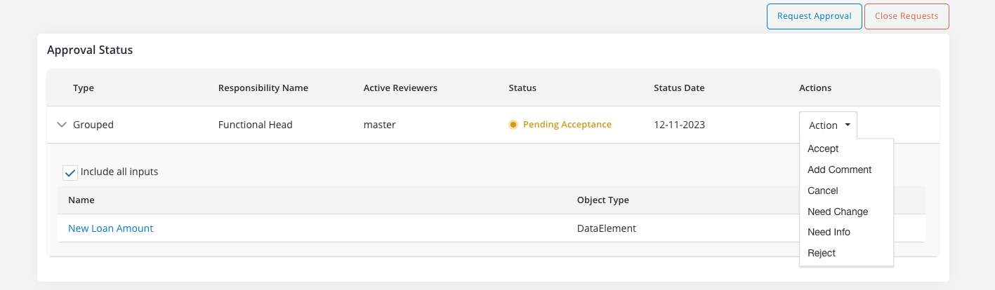 ** Step#3: Have reviewers review all objects and make their decision on the approval page of the main object