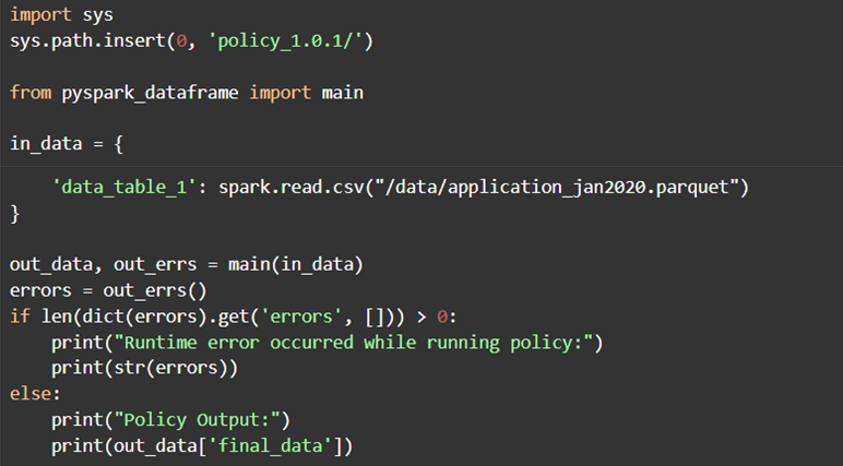 The pyspark_dataframe.py contains a main() function into which data can be sent in the form of a pyspark dataframe for execution on large data. A data table in spark is described by a Spark DataFrame.