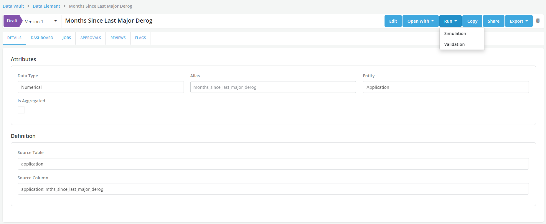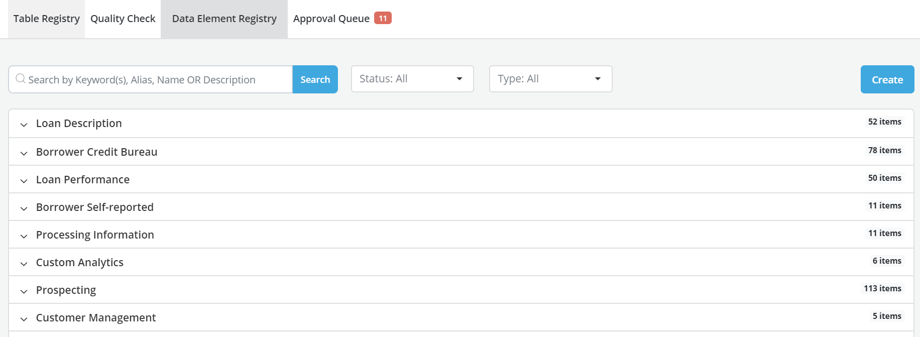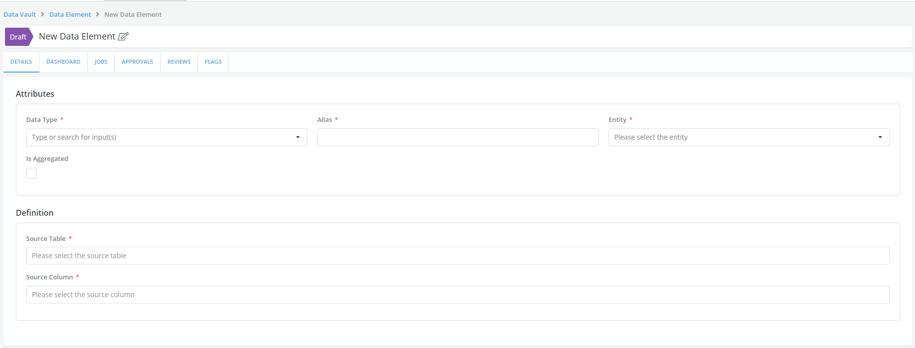 To create the Data Element, click on the Data Element Registry tab within Data Vault