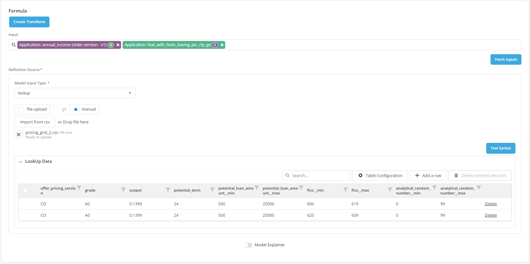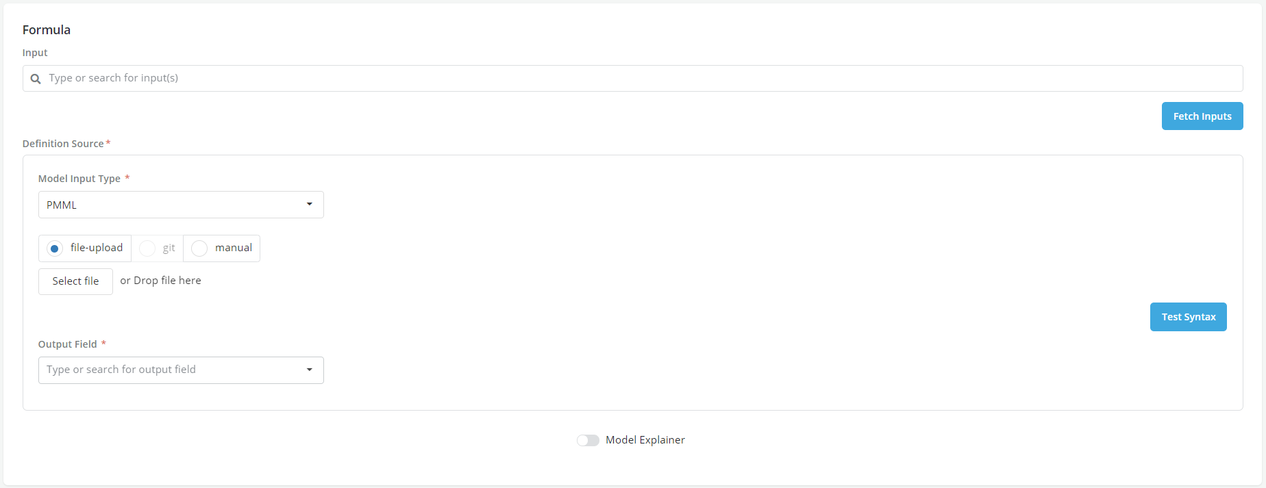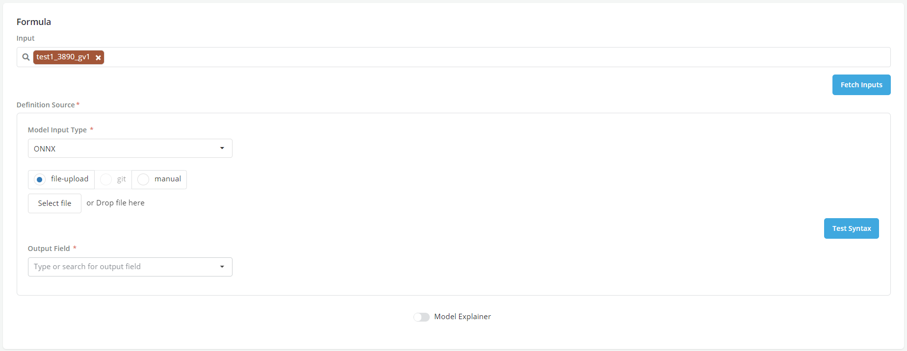 Click on test syntax to verify that all inputs are declared and match with the uploaded file’s expected input