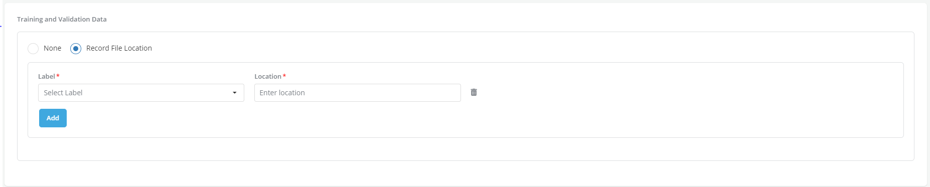 - Record File Location: Specify the file location. Multiple locations can be added. The files' location should be in the data lake that the platform is reading from.