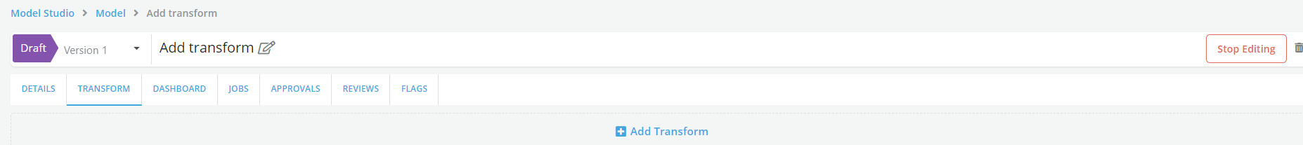 - Click on the Transform tab at the top the page to access a page to start adding transforms