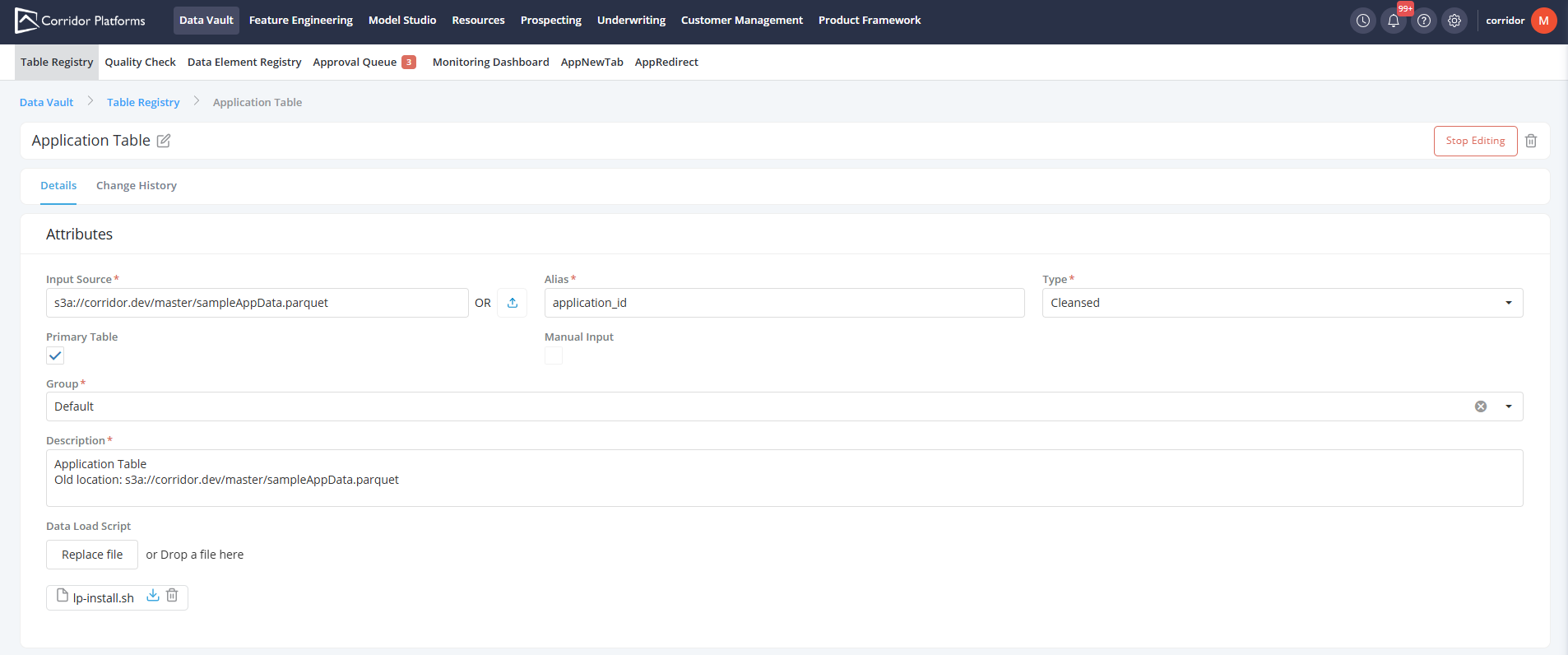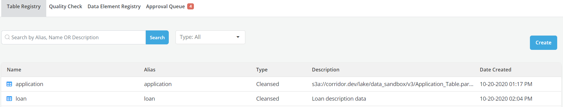 Click on Table Registry in the breadcrumb. The new table is registered and can be seen on this screen and is available to use in downstream processes and save the changes once editing is complete.