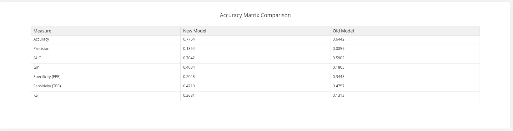 User can compare two or more objects (e.g. models) using the Comparison function: