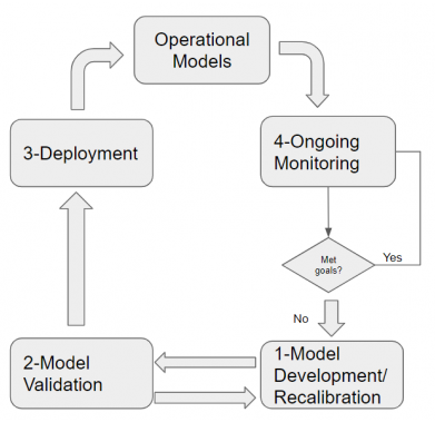 Model Management is a closed-loop process involving model development/calibration, model validation, deployment & model monitoring. The overall process requires close coordination among the model development, validation, production and monitoring teams at the bank with robust controls & well-defined interfaces between teams.