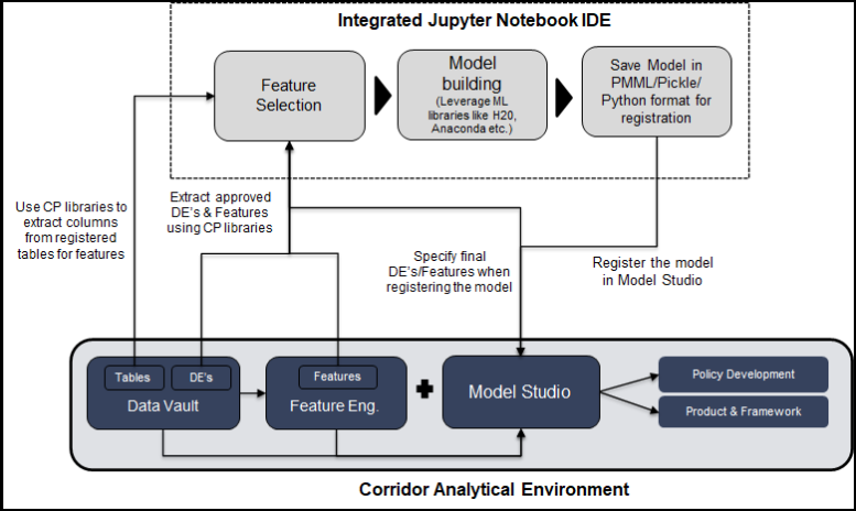 Platform offers a rich library of routines that allow modelers to extract authorized data from Platform to their modeling sandboxes though python and then have complete flexibility to use powerful ML/AI libraries like Anaconda, H2O, PyTorch to build robust models leveraging big data.
