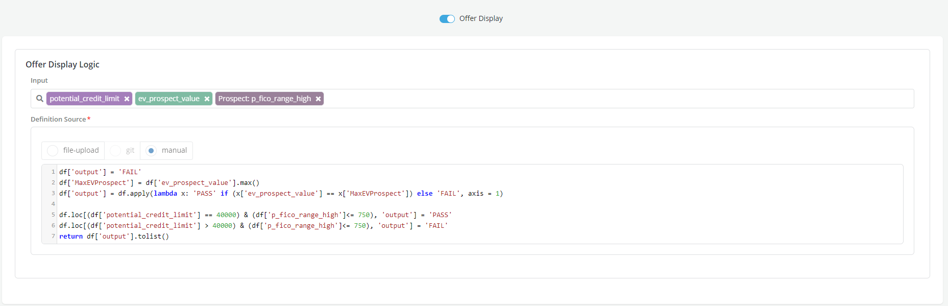 While this example is an illustration, highly custom display logic (by segments as required) can be configured in the offer display module to give the ultimate “segment-of-1” offer customization capability to the policy writer.