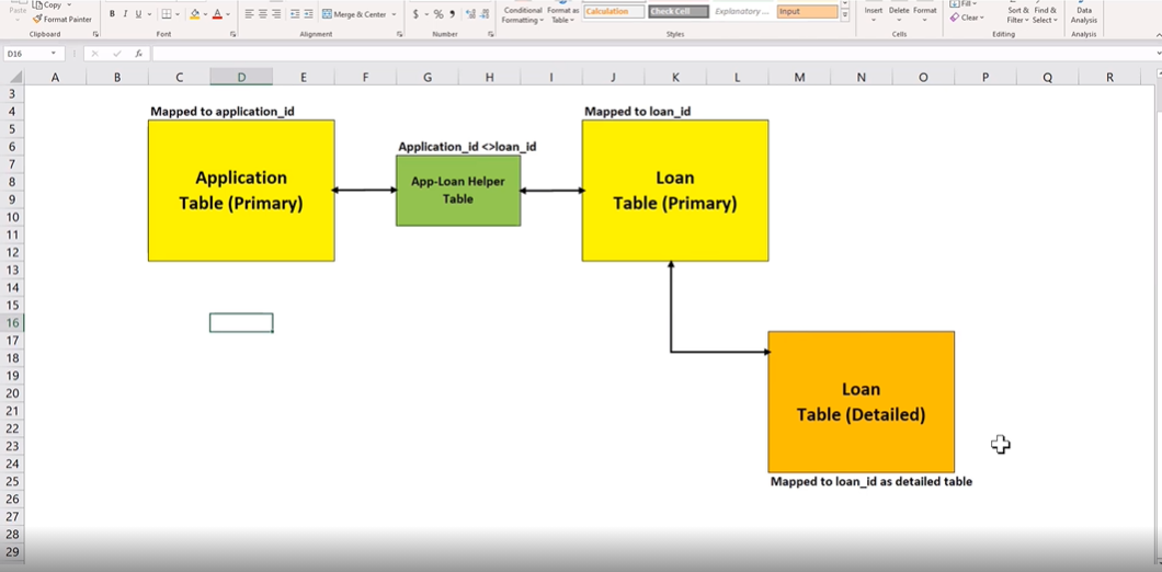 Application-to-loan helper table - We will have a Helper table which will map the association between Application and Account ID. So for all applications which did not originate a loan there will be a null value for the Account ID.
