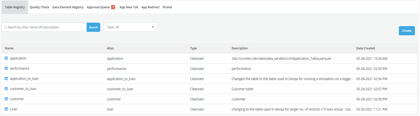 Similarly, the Loan table is registered on the Platform.