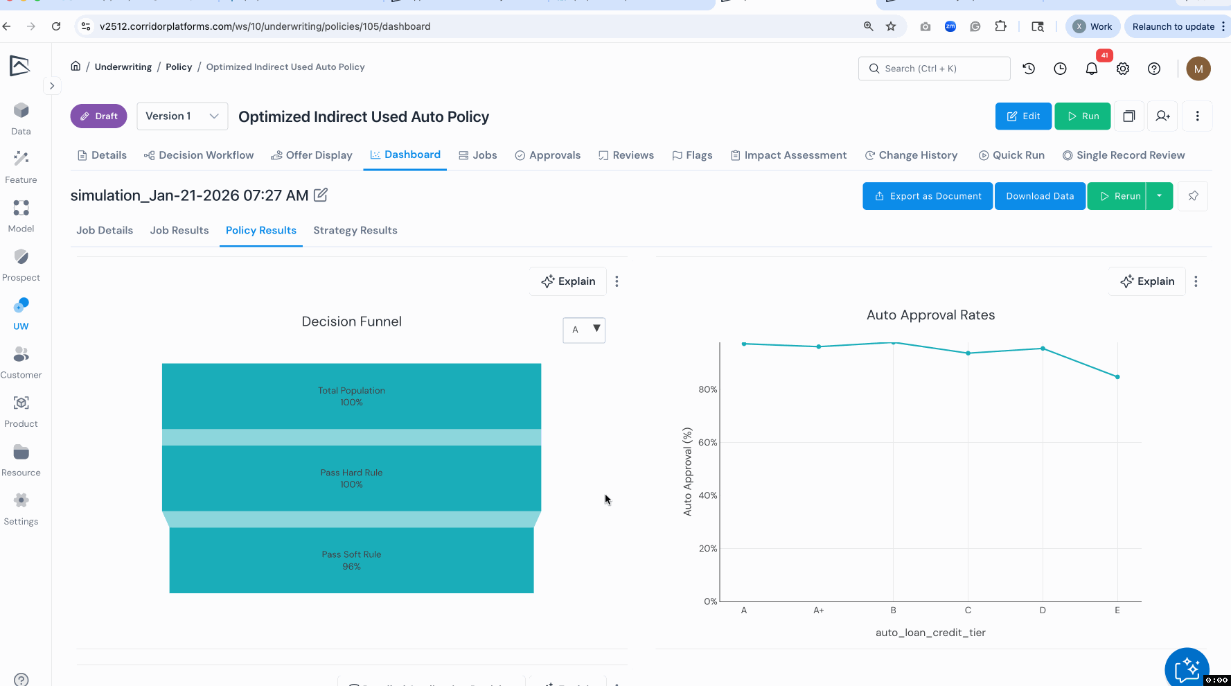 We've redesigned the policy strategy tab into a unified decision workflow that mirrors how underwriting actually works. This improvement brings together offer creation, variable assignment, custom outcomes, and derived variables into a coherent flow that's easier to author, review, and maintain.