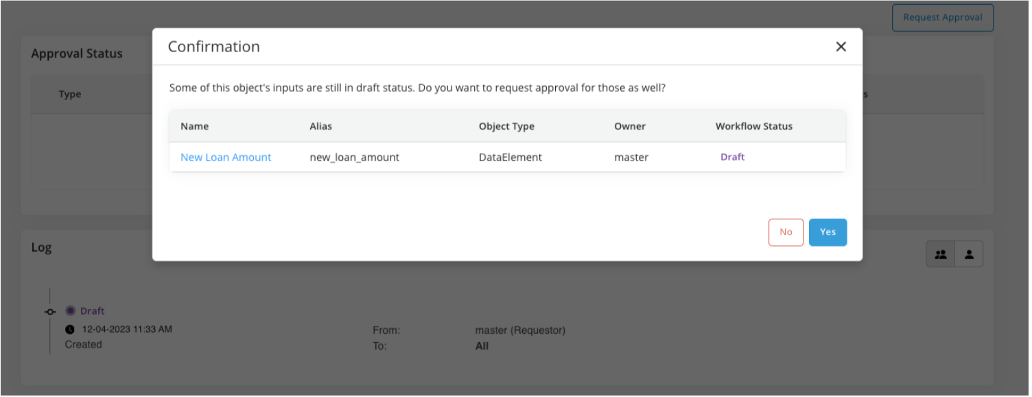 We have worked on supporting Approvals for multiple objects - which are part of a single lineage. So, when requesting a review - you can now additionally request the review of all the direct and indirect inputs being used in the object. It is highly recommended that Grouped Approvals be used with the ability to Additional Dashboards to make the review seamless and easier for the reviewer.