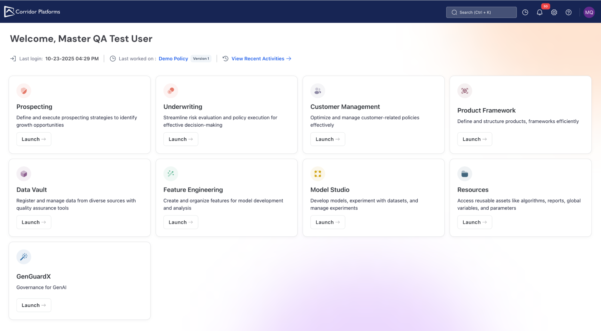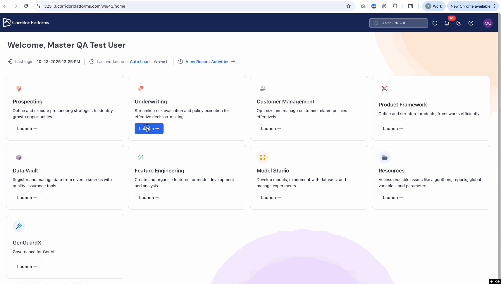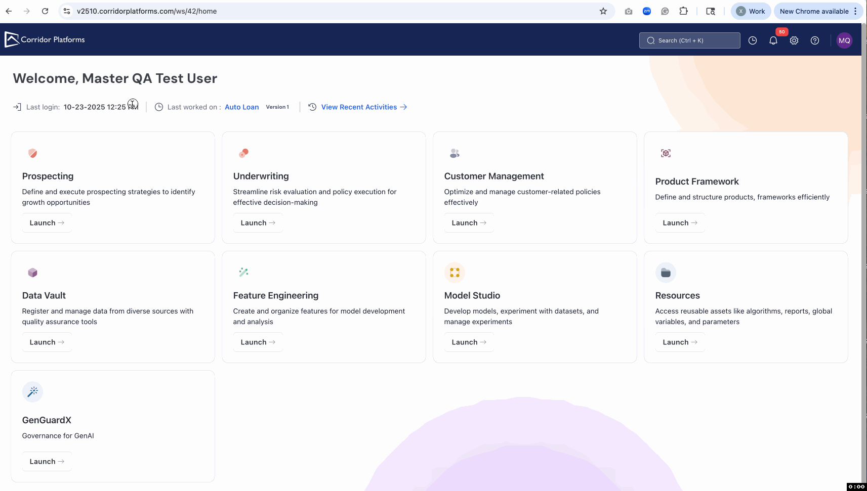 A redesigned home page that prioritizes quick access to key modules and recent work for improved usability.