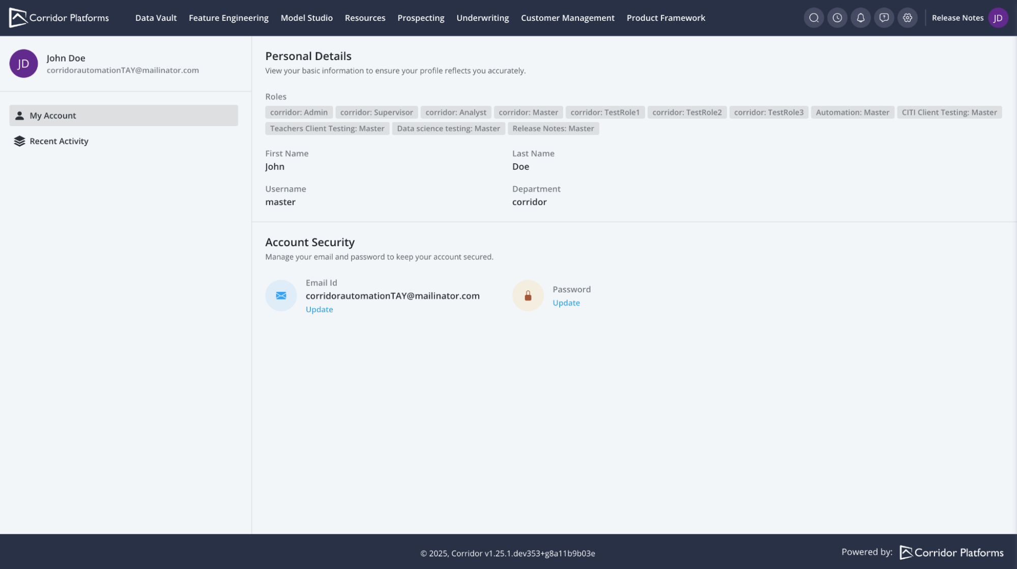With the new profile page, you can effortlessly access your account details, review roles. This aims to provide users a clearer idea about their profile configurations and accesses available to them.