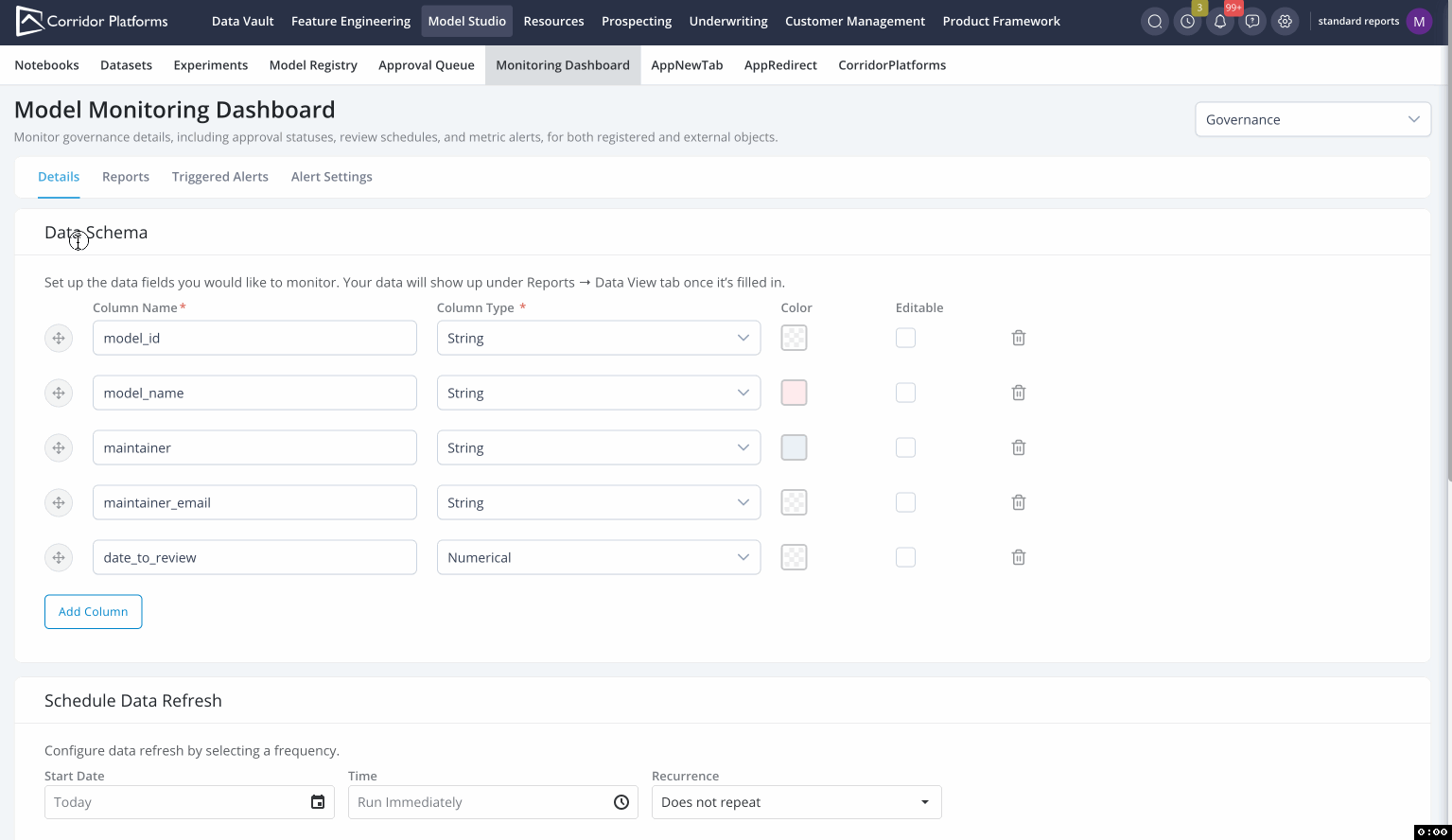 - Automated Alerts Set up alerts to track key metrics automatically, such as upcoming review dates for models or other time-sensitive conditions.