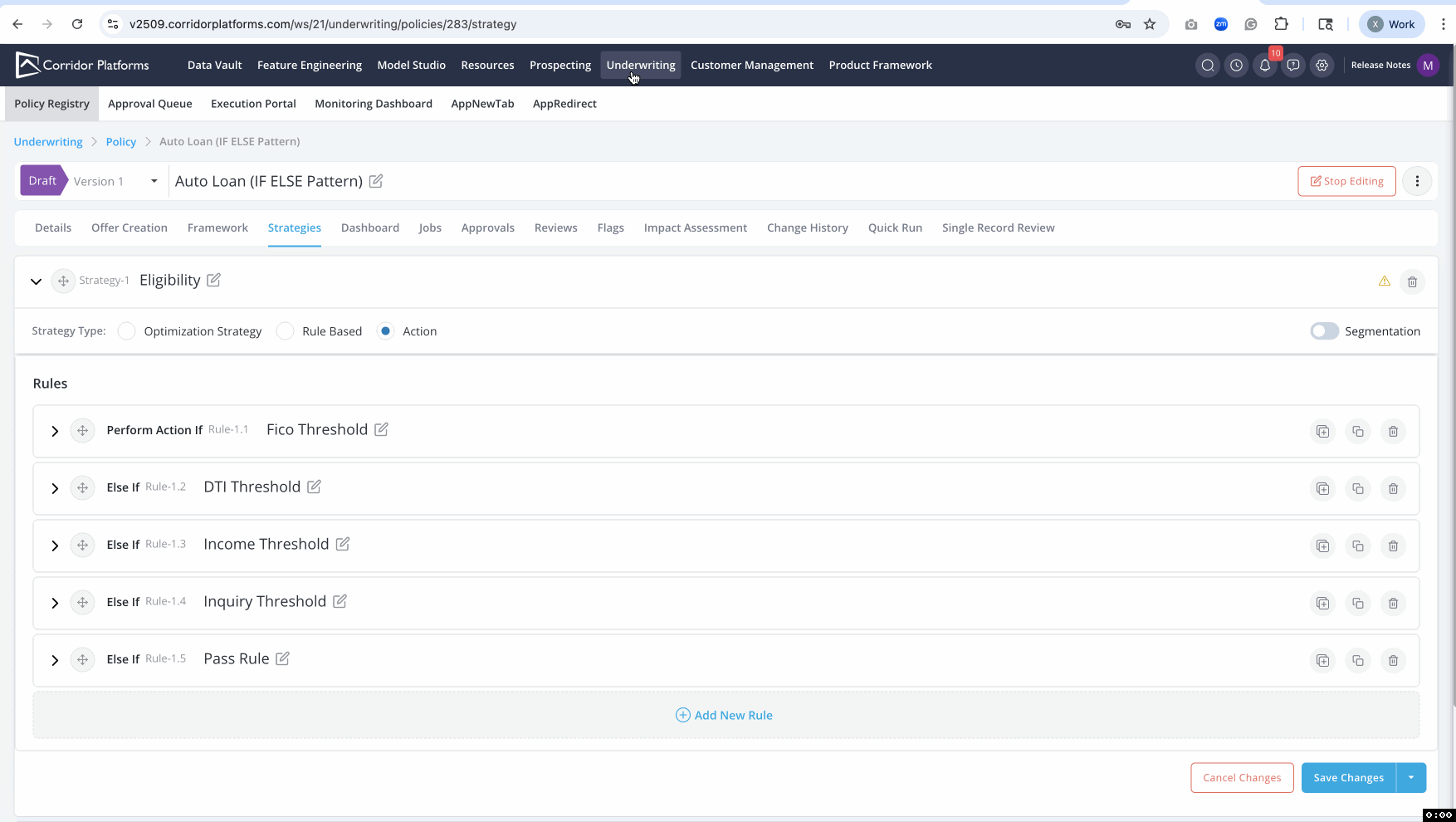 We've updated the rule execution flow to follow a waterfall pattern. Once an application is assigned an action (e.g., Approved, Denied), it will no longer be evaluated by subsequent rules. This removes the need to manually check whether previous rules returned False.